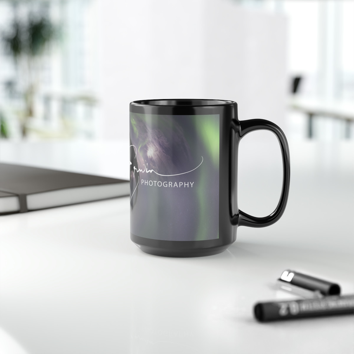 Aurora Borealis-Black Coffee Mug 15oz, Skies Two-Tone